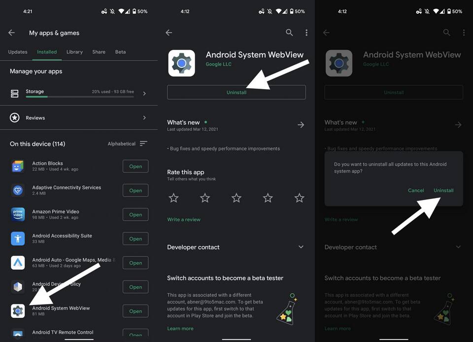- Переустановка WebView