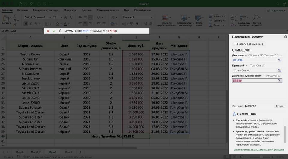 СУММЕСЛИ | Суммирует ячейки, соответствующие критерию |