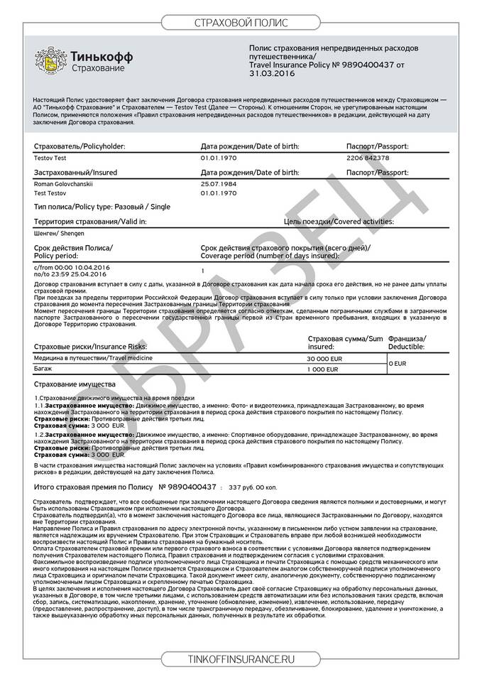 - Минимальное покрытие от 30 000 евро для стран Шенгена