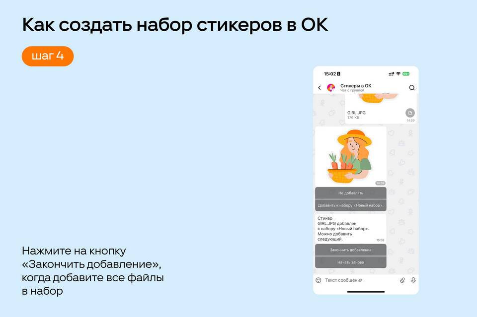 - Найденные стикеры можно повторно отправить или добавить в избранное