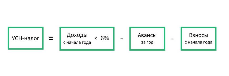 Налог | 1 000 000 × 6% - 40 000 = 20 000 руб |