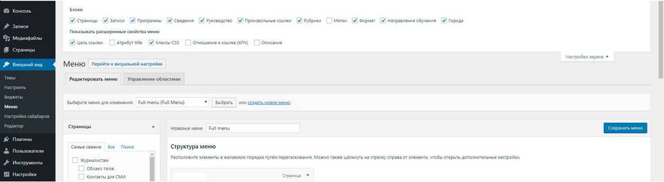 Основные типы меню
